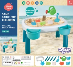 De set bevat 7 praktische accessoires – een gieter, schep, 4 vormpjes (octopus, kat, panda, konijntje) en twee reservoirs voor in de tafel. Zo kunnen kinderen zandkastelen bouwen, water gieten en hun creativiteit en handvaardigheid ontwikkelen.