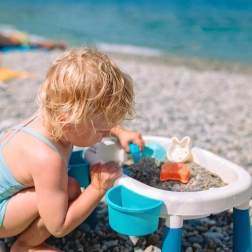 Ontdek de veelzijdige 2-in-1 water- en zandtafel voor kinderen, die van elke middag een kleine vakantie maakt. Twee gescheiden bakken maken het mogelijk om waterspel te combineren met zandactiviteiten, terwijl de stabiele poten en duurzame kunststof zorgen voor veilig spelen thuis, in de tuin en op het strand.