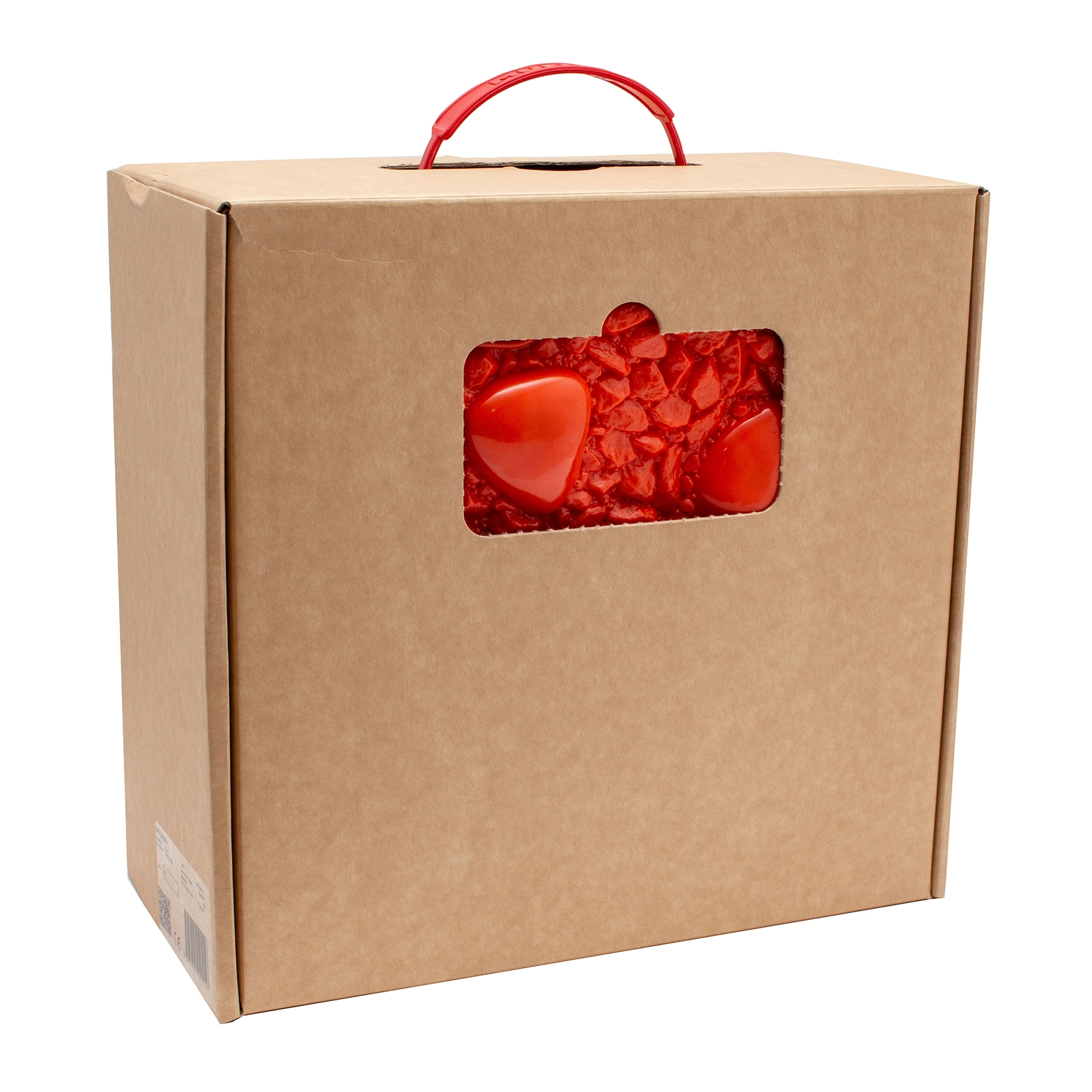 Wordt geleverd in een draagbare kartonnen verpakking met een rood handvat, wat het transport vergemakkelijkt.