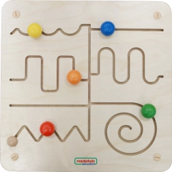 Het houten educatieve bord van Masterkidz met verschillende gebogen banen en kleurrijke knoppen helpt kinderen hun fijne motoriek en ruimtelijke oriëntatie te ontwikkelen.