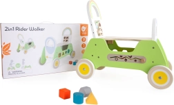 Deze kleurrijke houten 2-in-1 duw-ride-on combineert een stabiele loopwagen met een leuke loopauto in één. Kinderen genieten van zelfverzekerd leren lopen, duwen en zitten, terwijl ze hun bewegingcoördinatie, balans en creatief spel ontwikkelen. Dankzij de hoogwaardige afwerking en de gladde, afgeronde randen is het een ideale keuze voor de kleinste ontdekkers.