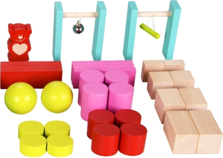Hoogwaardige houten afwerking met gladde randen en slijtvaste kleuren is vriendelijk voor kinderen en natuur. Inclusief zakje voor opbergen.