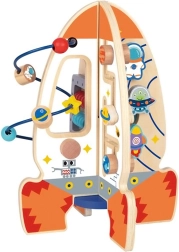 Deze houten speelset van Tooky Toy is ontworpen voor kinderen vanaf 3 jaar. Gemaakt van hoogwaardig hout en afgewerkt met ecologische en niet-giftige verven. Het speelgoed stimuleert vooral de fijne motoriek en het reactievermogen van kinderen. Elke zijde van de raket biedt verschillende activiteiten die de fantasie, logica, geheugen en beweging prikkelen.
