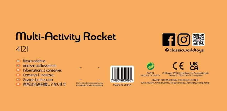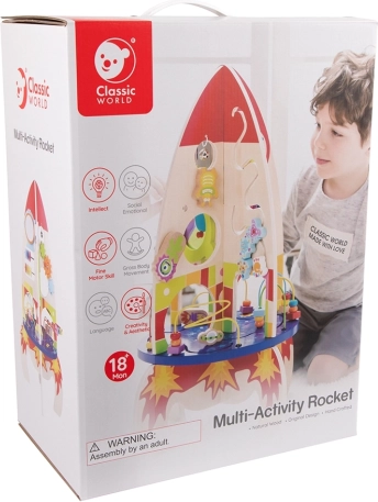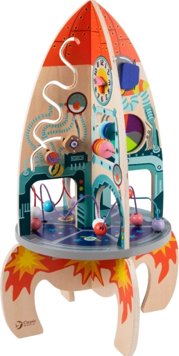 Ontdek de wereld met de multifunctionele raket die leren en plezier combineert in één geweldig stuk speelgoed. Dankzij de verschillende activiteiten aan elke zijde blijft je kind voortdurend geboeid. De raket is gemaakt van natuurlijk hout, wat haar ecologisch en veilig maakt.