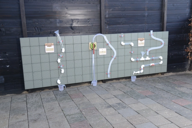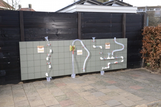 Bevestig buizen, trechters en bekers en creëer je eigen watercircuit. Kinderen begrijpen zichtbaar de waterstroom en oorzaak–gevolg.