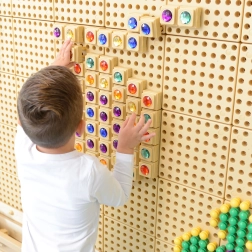 Plaatjes met pinnetjes zorgen voor snelle montage en demontage op compatibele pegboards – ideaal voor kleine kinderhanden.