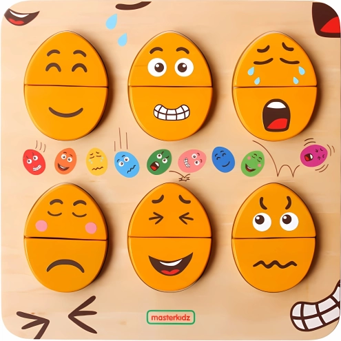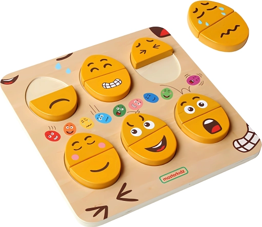 Ontdek een leuke en educatieve spelactiviteit voor de allerkleinsten: het houten bord van MASTERKIDZ, waarmee kinderen emoties leren herkennen en uiten. Door de bovenste en onderste delen van gezichten te combineren, creëren kinderen verschillende gezichtsuitdrukkingen en ontwikkelen zij emotionele intelligentie, empathie, fijne motoriek en communicatieve vaardigheden. De stevige houten uitvoering en de aangename kleuren ondersteunen concentratie en zelfstandig spel.