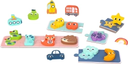 Dit spel vermaakt niet alleen, het leert ook door middel van kleurrijke vormen van dieren, fruit en voertuigen.