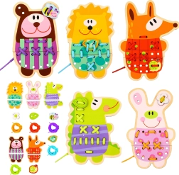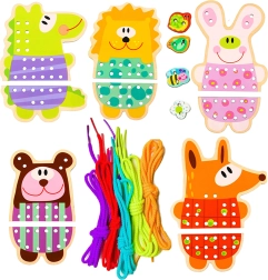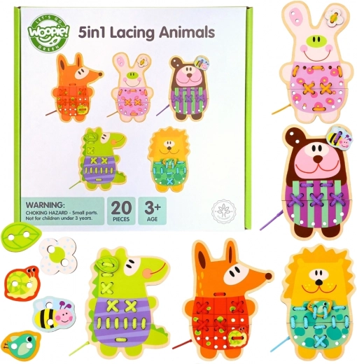 Houten rijgdiertjes 5-in-1 van het merk Woopie Green bieden een geweldige combinatie van plezier en educatie voor kinderen. Deze kleurrijke, houten diertjes met rijggaatjes stimuleren de ontwikkeling van de fijne motoriek en de oog-handcoördinatie.