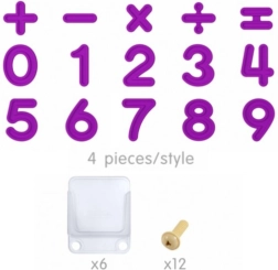 Deze complete set is ontworpen voor speels en overzichtelijk onderwijs in basiswiskunde. De paarse elementen spreken kinderen direct aan en dankzij de grotere afmetingen zijn ze eenvoudig te hanteren. Past perfect bij de MASTERKIDZ muur- en tafel-STEM-panelen en helpt zelfvertrouwen op te bouwen in het werken met getallen en eenvoudige vergelijkingen.
