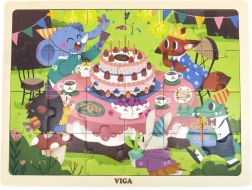 De houten VIGA-puzzel met vrolijke dieren rond een verjaardagstaart is een ideale keuze voor een eerste grotere puzzel. De onderplaat met voorbeeld biedt een stabiele basis en helpt kinderen gemakkelijker de juiste stukjes te vinden. De nummering van de stukjes 1–24 zorgt bovendien voor een speelse manier van kennismaken met cijfers en ondersteunt stap voor stap leggen zonder frustratie.