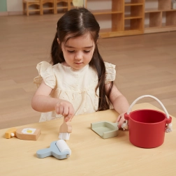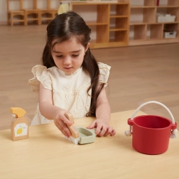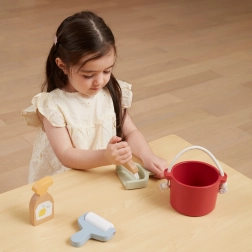 De stijlvolle houten schoonmaakset POLARB van VIGA verandert het dagelijkse opruimen in een leuk spel. Bevat alles wat nodig is voor imitatiespel – een emmer met touwhandvat, een handveger met schraper, een sprayfles en een roller. Het spel bevordert de fijne motoriek, zelfstandigheid en gevoel voor orde, terwijl de hoogwaardige houten afwerking en pasteltinten zorgen voor veilig en aantrekkelijk speelplezier.