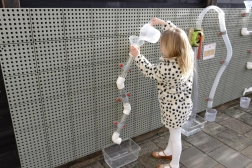 Kinderen kunnen vrij experimenteren met de opstelling van buizen en hun systemen uitbreiden met nieuwe elementen.