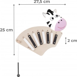 Dit stijlvolle en veilige zebra-muurpaneel is een geweldige toevoeging voor de ontwikkeling van muzikale vorming vanaf jonge leeftijd. Kinderen kunnen tonen uitproberen, eenvoudige melodieën maken en de wereld van klanken ontdekken, wat hun creativiteit en concentratie stimuleert.