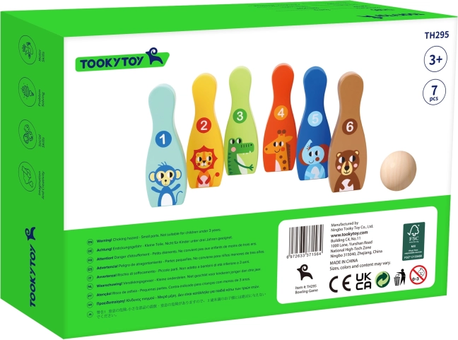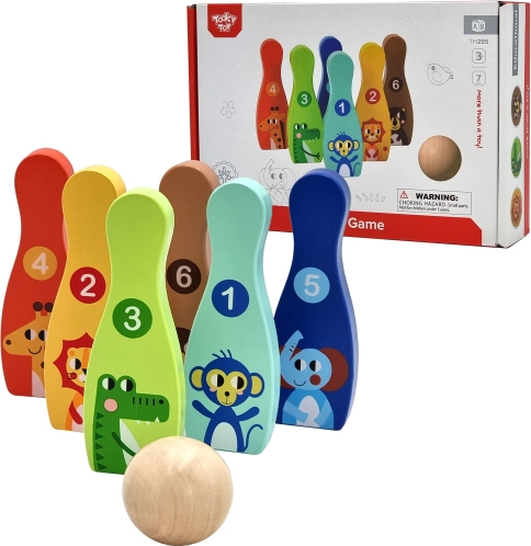 Ontdek een leuke en leerzame spelervaring voor de allerkleinsten: houten kegels met dieren van TOOKY TOY. Kleurrijke kegels met cijfers en een houten bal stimuleren de ontwikkeling van de grove motoriek, oog-handcoördinatie en het leren van cijfers. De veilige uitvoering van hoogwaardig hout en het aantrekkelijke design garanderen uren speelplezier voor één of meerdere kinderen.