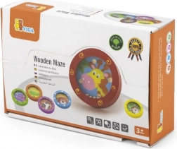 De VIGA houten doolhof is een leuk zakformaat spel voor kinderen dat ontdekkingsplezier combineert met vaardigheidsontwikkeling. Door te kantelen verplaatst het kind de metalen balletjes naar de juiste openingen volgens het dierenplaatje, waarbij het logisch denken, geduld en nauwkeurige bewegingen oefent.