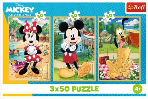 Ontdek de magie van puzzelen met een verpakking die drie verschillende puzzels van 50 stukjes biedt. Elk motief brengt een vrolijke vakantiesfeer met iconische personages Mickey Mouse, Minnie en Pluto. Ideaal om samen te leggen met broers en zussen of vriendjes.