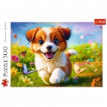 Puzzel Vrolijke hond bestaat uit 500 stukjes en toont een schattige hond. De voltooide puzzel heeft afmetingen van 480x340 mm.