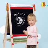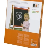 Stimuleer de creativiteit van kinderen met het dubbelzijdige magnetische bord van Viga – aan de ene kant een krijtbord, aan de andere kant een wisbaar whiteboard. De stabiele houten standaard, een papierrol om op te tekenen en het praktische meegeleverde accessoirespakket maken het tot een ideaal cadeau voor kleine kunstenaars.