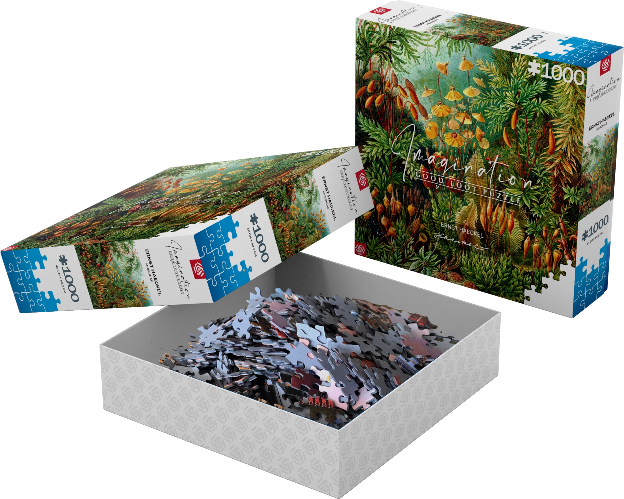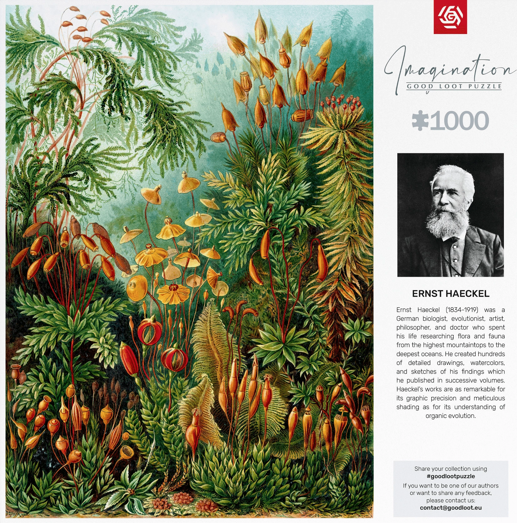 Geniet van een creatieve uitdaging met de puzzel Imagination: Ernst Haeckel - Muscinae, die uit maar liefst 1000 stukjes bestaat. Na voltooiing ontstaat een afbeelding van ongeveer 48 x 68,3 cm, die een fascinerend werk van de bekende illustrator Ernst Haeckel toont.
