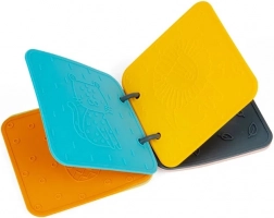 Het boekje is gemaakt van niet-giftige siliconen van voedingskwaliteit, veilig en zacht voor de gevoelige babyhuid.