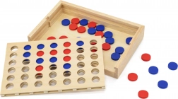 Het populaire spel 4 op een rij in een hoogwaardige houten uitvoering biedt tijdloos plezier dat generaties lang aanspreekt. Daag je tegenstander uit en leg als eerste vier fiches in één rij. Dankzij het stevige materiaal en het strakke design is het spel duurzaam, esthetisch en past het perfect in elk huishouden.