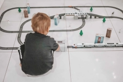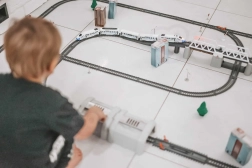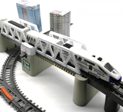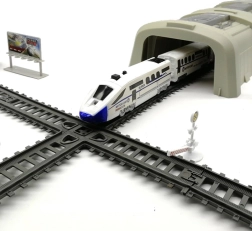 Deze moderne elektrische WOOPIE-treinbaan biedt kinderen urenlang spel en leren. De vijfdelige Pendolino-trein raast over het 9,14 m lange spoor, verlicht de weg met rood licht en past dankzij de snelheidsregeling gemakkelijk het speelniveau aan. Een geweldige attractie is de ophaalbrug bediend met een knop en de decoratieve tunnel, die spanning en realisme aan de rit toevoegen.