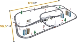 Ontdek het speelplezier voor kleine machinisten met de elektrische treinbaan WOOPIE met een spoorlengte van 9,14 m. De set biedt een ophaalbrug met knopbediening, een verlichte locomotief en snelheidsregeling. Hoogwaardige kunststof, rijk accessoires en realistische details stimuleren creatief en fantasierijk spel voor kinderen vanaf 3 jaar.