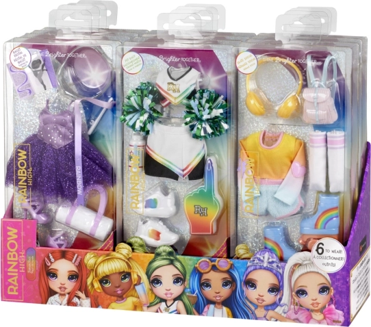De kledingset voor Rainbow High-poppen biedt een breed scala aan stijlen die elke jonge modeontwerpster aanspreken. Stel je pop voor als ballerina, klaar voor een dag bij het zwembad of een feestje. De mogelijkheden zijn eindeloos, waaronder schaatsen of het aanmoedigen van een sportteam.