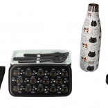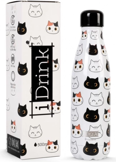 Dankzij de isolatieconstructie helpt hij de juiste dranktemperatuur langer vast te houden. De slanke behuizing (hoogte 26 cm, diameter 7 cm) past comfortabel in bekerhouders en rugzakken. De elegante kattenprint benadrukt je stijl.