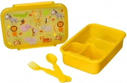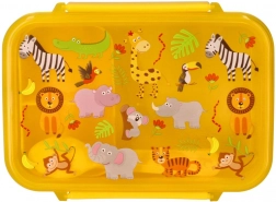 De vrolijke gele lunchbox met afbeeldingen van een leeuw, zebra, giraffe en aap maakt elke kindersnack leuker. Dankzij de compacte afmetingen van 18 × 13 × 6 cm past hij makkelijk in de schooltas, terwijl er voldoende ruimte is voor een sandwich, fruit en kleine snacks. Dankzij het BPA-vrije kwaliteitsmateriaal is de box veilig voor dagelijks gebruik.