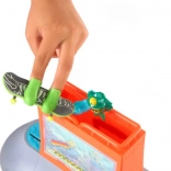 Het Hot Wheels Skate Aquarium skatepark biedt geweldige hindernissen en een leuk aquariumbeslag met een piranha. Het is uitgerust met een volledig gemonteerde fingerboard en afneembare schoenen die kleine rijders helpen om de controle over de board te behouden bij het leren van trucs.