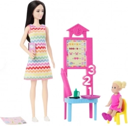 De set bevat een Barbie-pop en haar kleine leerling, wat creatief rollenspel op school mogelijk maakt.