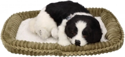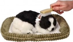 Gedetailleerde zwart‑witte vacht, een halsband met plaatje en het subtiele ‘ademhalen’ tijdens het slapen geven het puppy een authentieke indruk van een echt huisdier.