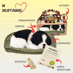 Dit natuurgetrouw vormgegeven pluchen hondje ziet eruit en voelt als een echt puppy. De zachte zwart‑witte vacht, de halsband met plaatje en de rustige slaap met ademeffect creëren een rustgevende sfeer voor ontspanning en het in slaap vallen. Ideaal voor kinderen die naar een eigen huisdier verlangen.