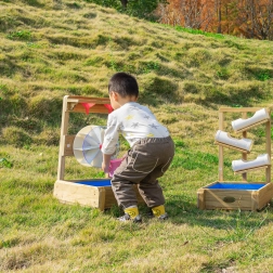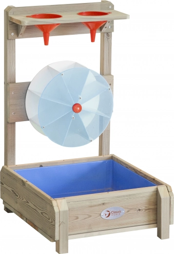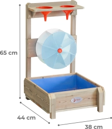Deze outdoor water-speelset van geïmpregneerd natuurhout is de ideale aanvulling voor elke zandbak en tuin. Kinderen leren de principes van waterstroom en oorzaak–gevolg, terwijl het draaiende rad en de stroming door de gootjes plezier in ontdekken brengen.