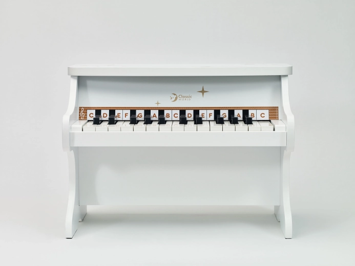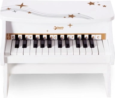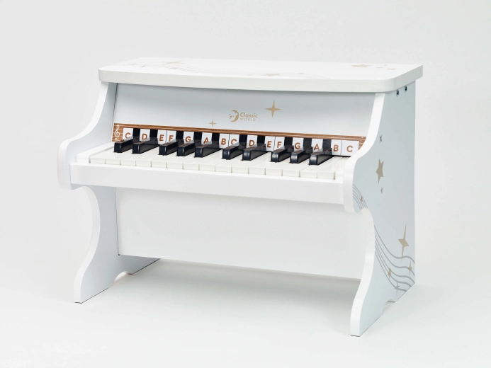 De CLASSIC WORLD kinderpiano is zorgvuldig gemaakt van hout en gelakt met een niet-giftige afwerking in het wit. De realistische uitvoering en zuivere toon benaderen een echte muzikale ervaring en stimuleren kinderen om melodie en ritme te ontdekken.
