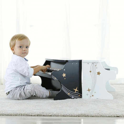 De stevige houten constructie met niet-giftige witte lak zorgt voor duurzaamheid en veiligheid bij het dagelijkse spelen van kleine muzikanten.