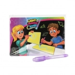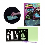 Deze set bevat een schrijfplaat en een pen met onzichtbare inkt, ideaal voor het schrijven van geheime briefjes. De inkt is onder normale lichtomstandigheden onzichtbaar, maar begint in het donker te gloeien, wat unieke en verrassende ervaringen voor kinderen garandeert. In de verpakking zitten ook sjablonen voor nog meer plezier en inspiratie.