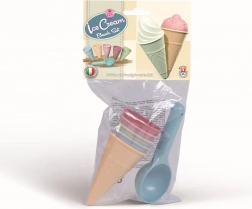 Speelse 6-delige zandset voor kleine ijsjesmakers: bevat vijf hoorntjes en een ijsschep. Gemaakt in Italië van hoogwaardig plastic, geschikt vanaf 10 maanden.