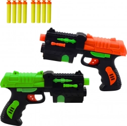 Ontdek dubbele portie plezier met de set van twee pistolen voor foam pijltjes met zuignappen. Ergonomische handgrepen, compacte afmetingen en een eenvoudig handmatig mechanisme zorgen voor comfortabel en veilig gebruik. Het kleurrijke, dynamische design spreekt zowel jongere als oudere schutters aan en ondersteunt hun motorische vaardigheden.