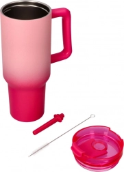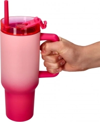 Ontdek het gemak van een grote thermobeker met rietje in een elegant roze design. Het brede handvat ligt prettig in de hand, het deksel minimaliseert morsen en het rietje maakt drinken zelfs tijdens het lopen eenvoudig. Ideaal voor water, ijskoffie of limonades.