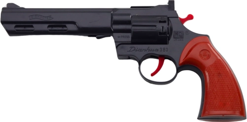 De populaire revolver, geïnspireerd op klassieke westerns, levert een indrukwekkend effect en natuurgetrouwe details. Met de draaibare trommel en de optie om knalkaps te gebruiken ontstaat een authentieke schotbeleving, terwijl hij ook geschikt blijft voor spel zonder pyrotechniek. De zwarte afwerking met rode accenten benadrukt de stijlvolle look.