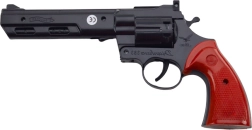 Ontdek de klassieke capsule-revolver die zowel kleine als grote westernfans zal bekoren. Dankzij de draaibare trommel oogt hij overtuigend en kan hij met of zonder capsules worden gebruikt – als speelgoed, rekwisiet of onderdeel van een kostuum. De zwarte behuizing met rood handvat zorgt voor een authentieke uitstraling en comfortabel houvast.