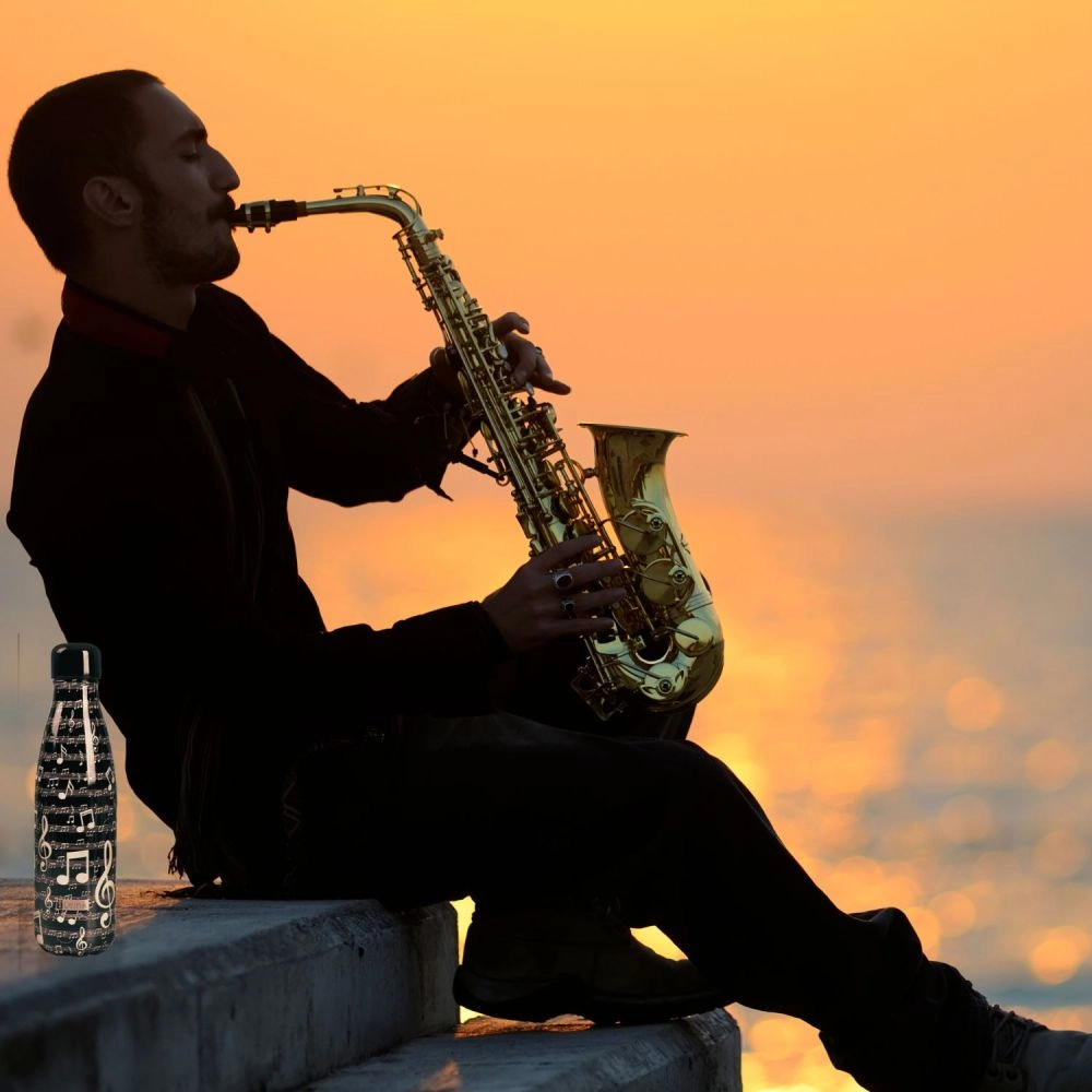 Deze zwarte thermosfles met het muziekdesign “Music” valt op door een sobere, elegante esthetiek met 3D-effect. Dankzij de compacte afmetingen past hij gemakkelijk in een rugzak of flessenhouder. Ideaal voor zowel warme als koude dranken, die langer op de gewenste temperatuur blijven.