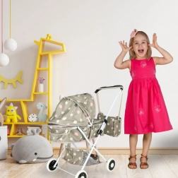 Bied uw kind de ideale omgeving voor de zorg en het opvoeden van haar favoriete pop met deze elegante kinderwagen. Ontworpen om perfect een echte kinderkinderwagen na te bootsen, waardoor kinderen de wereld van rollenspellen kunnen betreden. Met een diepe gondel en verstelbaar handvat is het ideaal voor binnen- en buitenwandelingen.