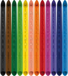Kleurpotloden en stiften met decoratieve gravures en een driehoekige vorm voor eenvoudig gebruik.