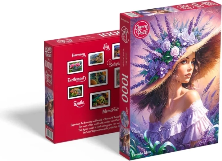 Ontdek de rustgevende sfeer van lavendelvelden met de puzzel CHERRY PAZZI Lavendelmuse. Met 1000 stukjes biedt deze puzzel de ideale combinatie van ontspanning en concentratie, en het voltooide beeld met een afmeting van ca. 50 × 70 cm is uitstekend geschikt om in te lijsten.