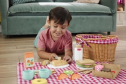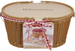 De houten picknickmand FISHER-PRICE tovert elke middag om in leuk picknickspel. De stijlvolle mand met rood-witte voering en de meegeleverde deken creëren een realistische setting, terwijl de kleurrijke houten etenswaren, servies en bestek verbeelding, delen en communicatie stimuleren.