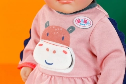Schattig junglejurkje voor BABY Born-poppen in maat 36 cm. Dit zachtgekleurde jurkje met een nijlpaardafbeelding is een geweldige aanvulling voor nog gevarieerder speelplezier. Bevat: